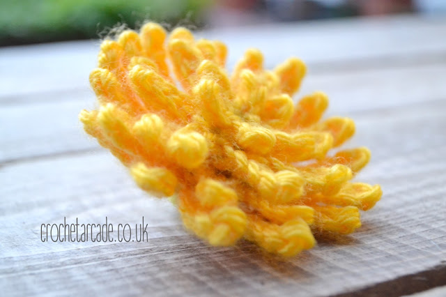 Today I decided to go for a yellow flower. So far in my collection I’ve made Purple Lavender Crochet Flower, White Primrose Crochet Flower and Light Blue Aster Crochet Flower so yellow will break it up nicely.